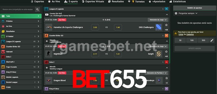 O Bet655 oferece uma grande seleção de opções de apostas em e-sports com probabilidades competitivas